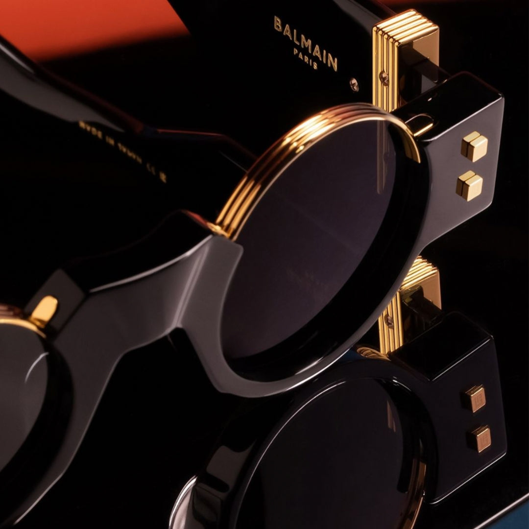 Cautiva en el desfile Primavera-Verano 2025 de Balmain, luciendo monturas Brigade V impregnadas de la energía de una estrella del pop de los 80, la elegancia militar francesa y una actitud de motociclista rebelde.